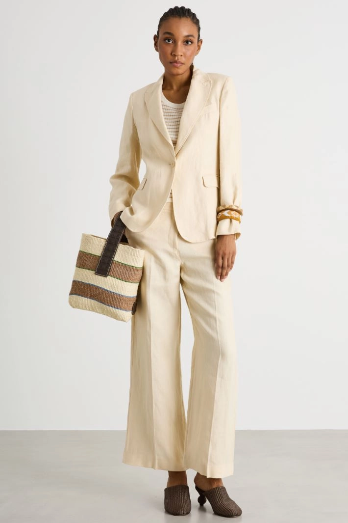 Slightly fitted blazer crafted in pure linen, with a lapel collar, long sleeves with buttoned cuffs, a breast pocket, flap welt pockets and a central vent on the back. Single-button fastening.