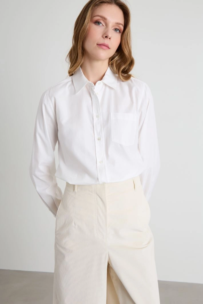 Straight-cut shirt in pure cotton oxford, with classic collar, long sleeves with cuffs and buttons, patch pocket on the chest and yoke with box pleat on the back. Button fastening.