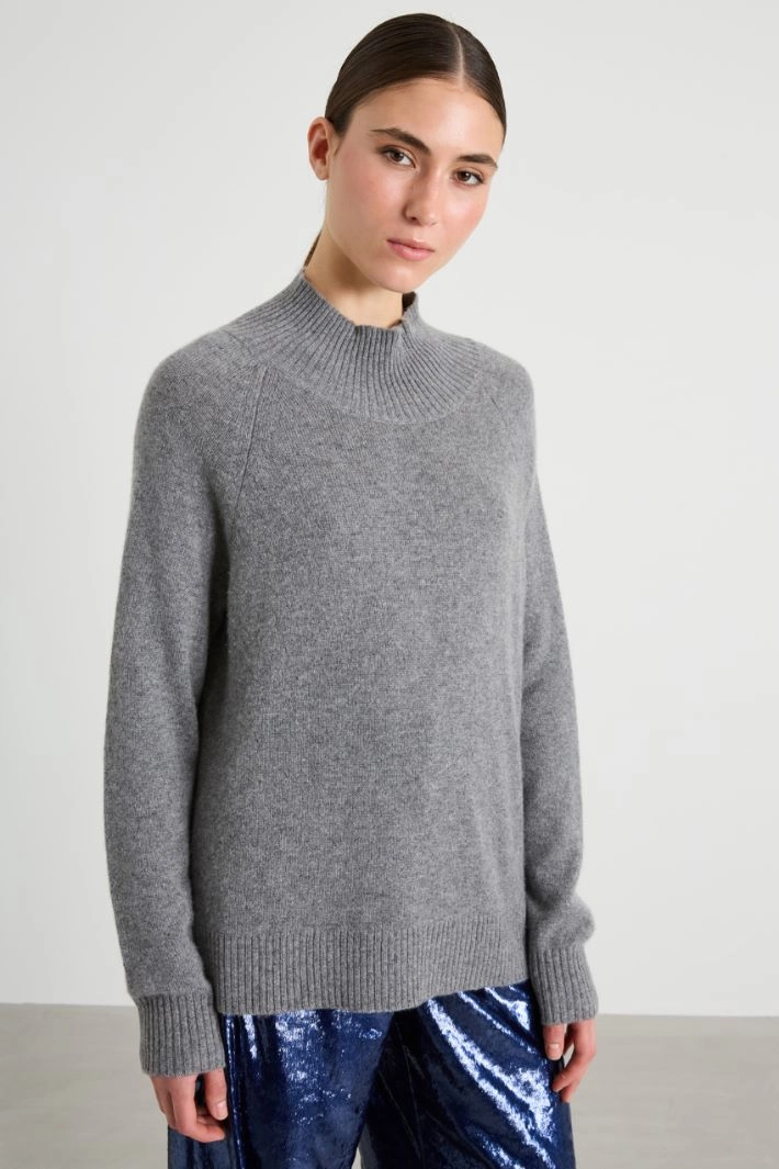 Loose-fit sweater in pure cashmere yarn, with a high neck, long raglan sleeves and ribbed trim.