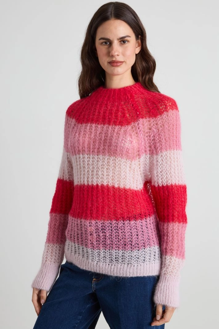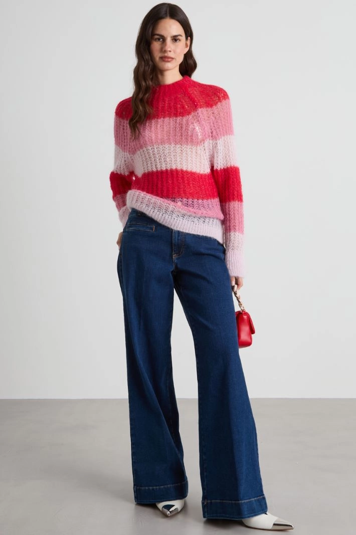Regular-fit sweater in mohair and alpaca yarn, with intarsia, crew neck, long raglan sleeves and ribbed trim.