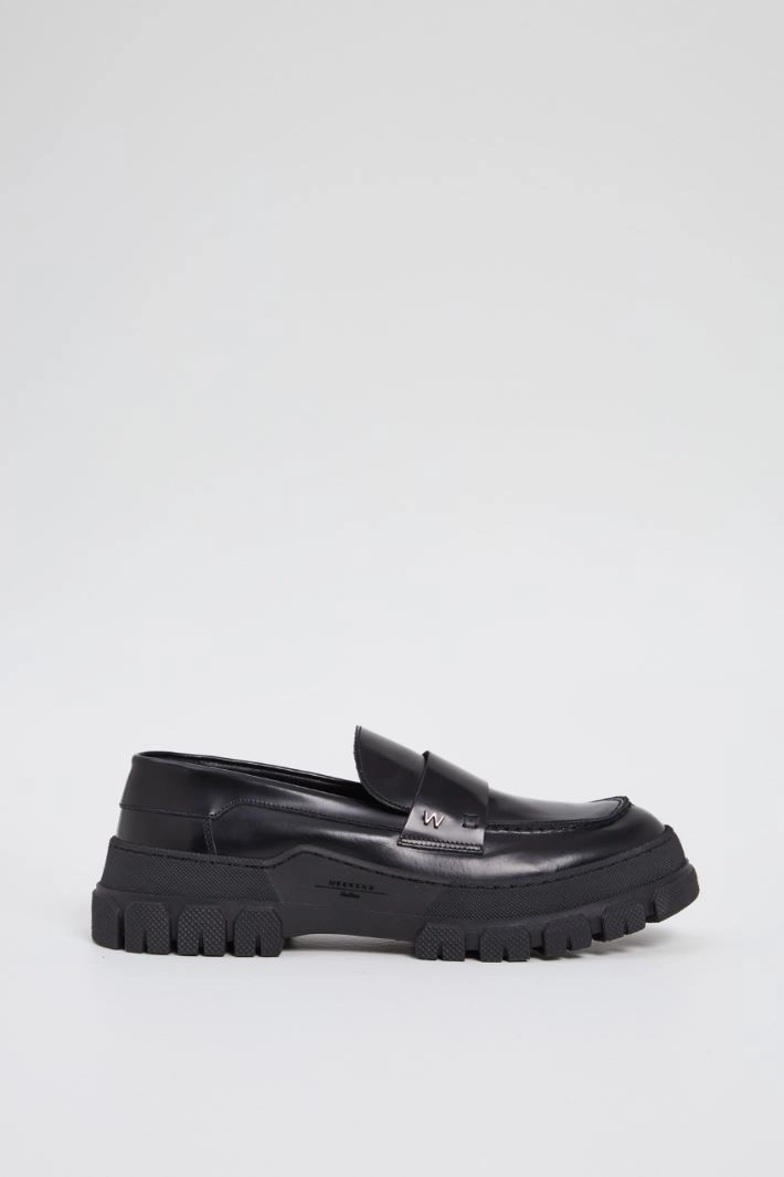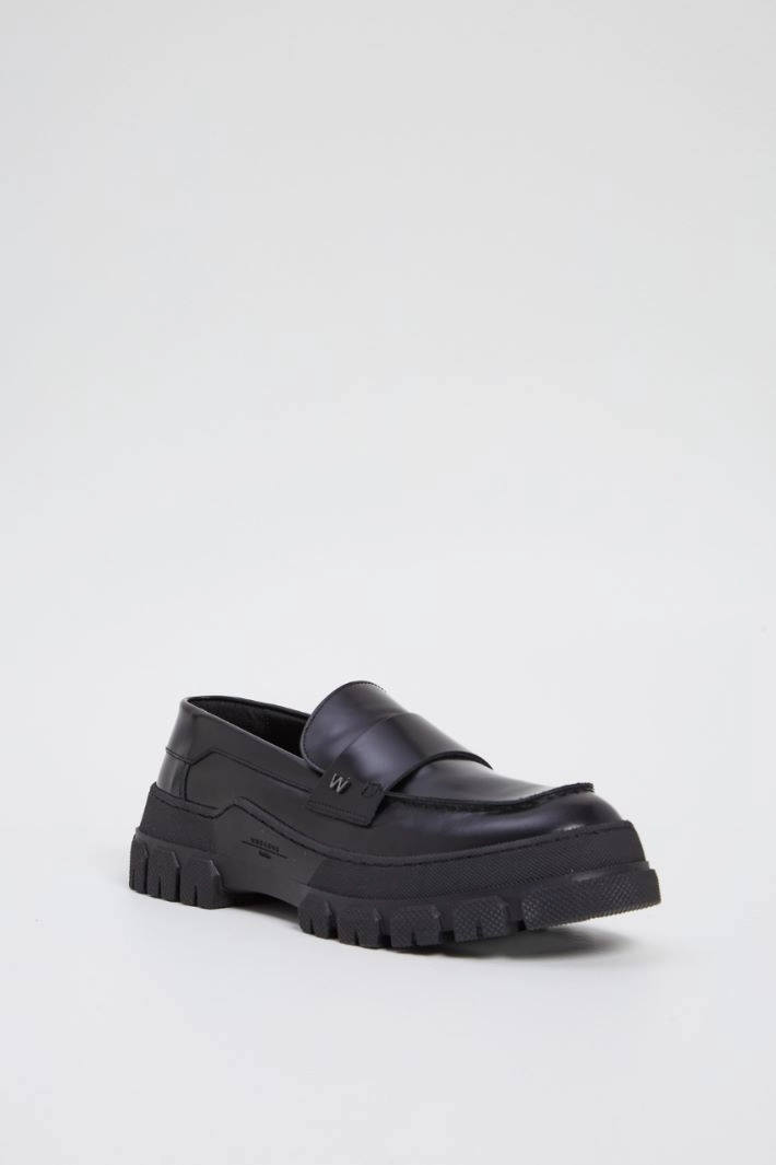 Moccasins in genuine leather with a shiny finish, with a band detail on the front. Leather lining, rubber treaded sole.