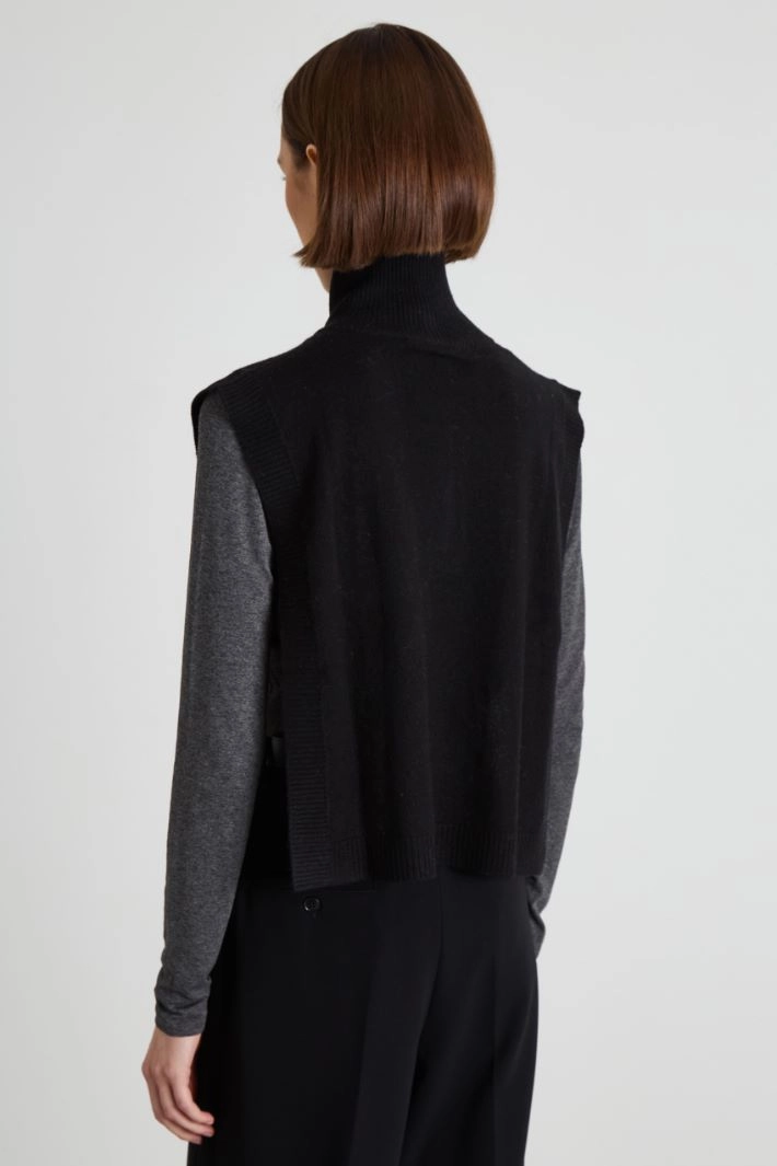 Collar in pure cashmere yarn, with high collar, ribbed trim and zip fastening.