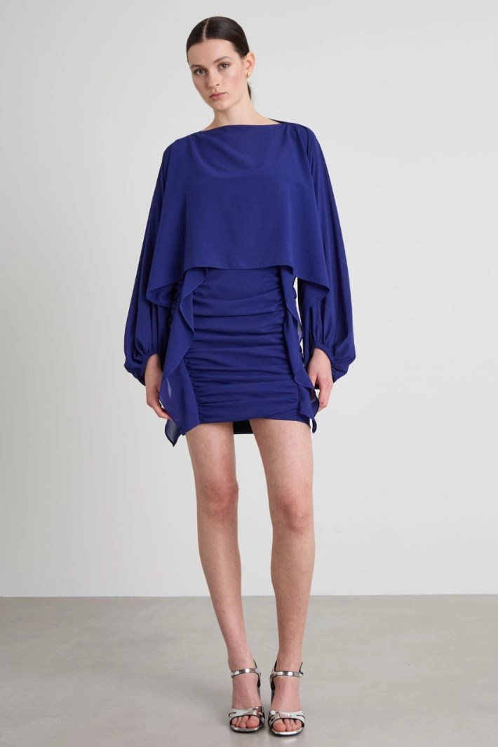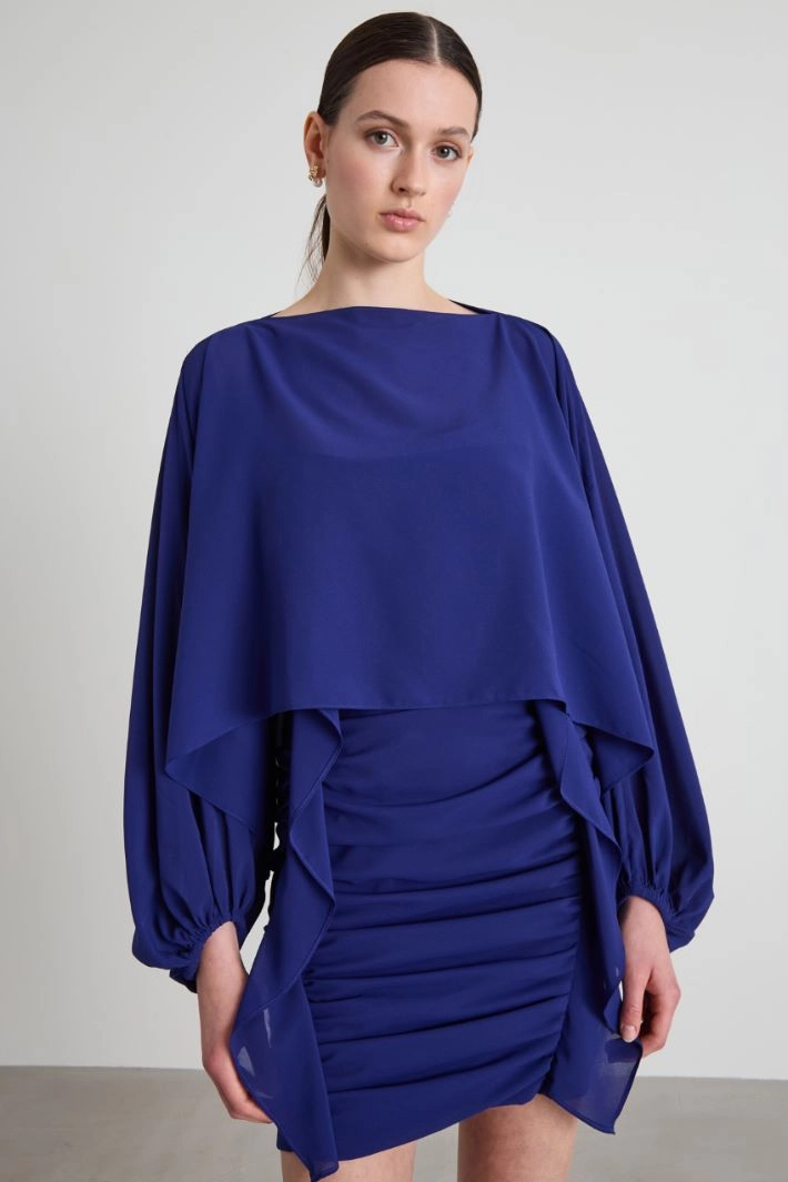 Shrug in crepe fabric with three-quarter kimono sleeves.