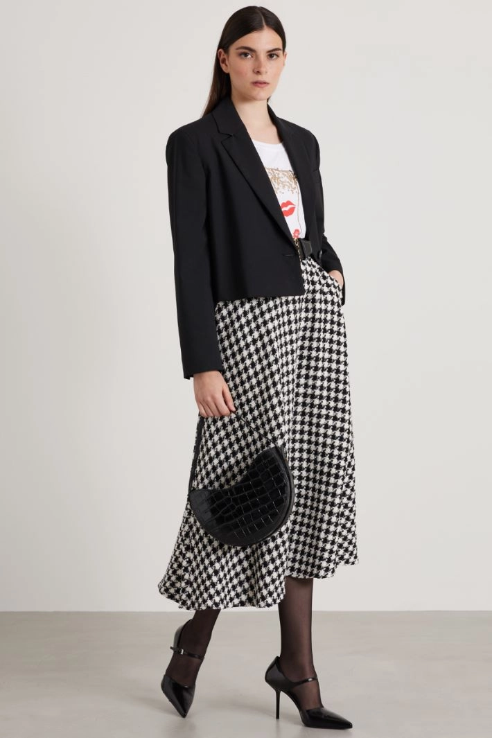 Fabric 54% polyester, 44% virgin wool, 2% elastane; sleeves lining 65% acetate, 35% polyester; bust lining 62% acetate, 38% polyester.
