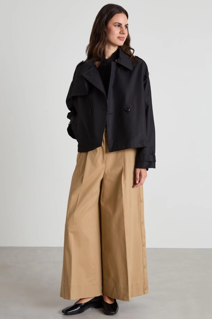 Short gabardine trench coat
