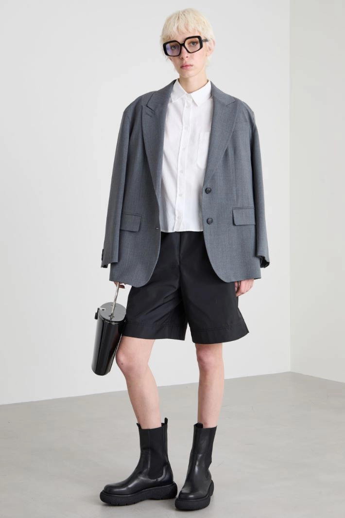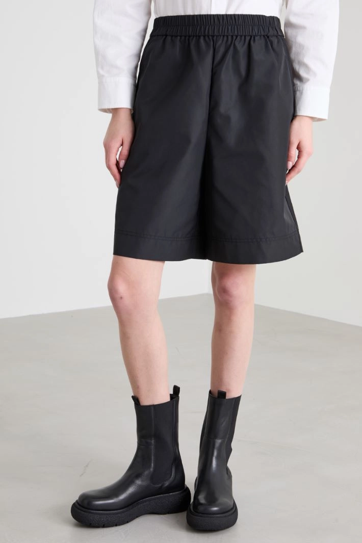Wide-cut Bermuda shorts in technical duchesse, with elasticated waistband, French pockets and single patch on the back.
