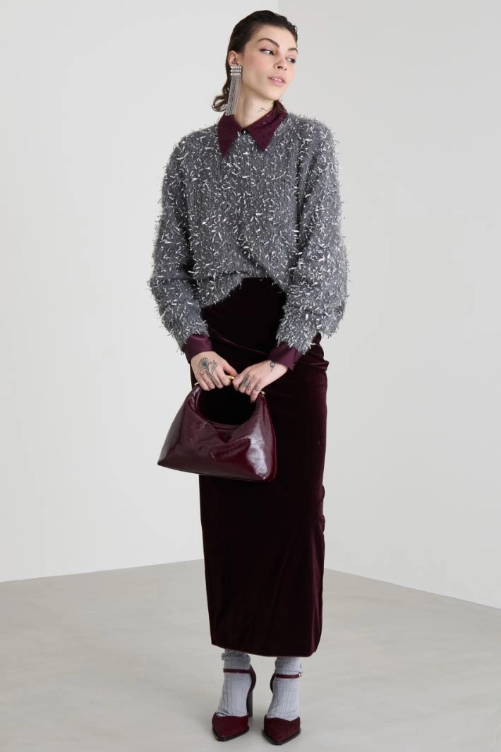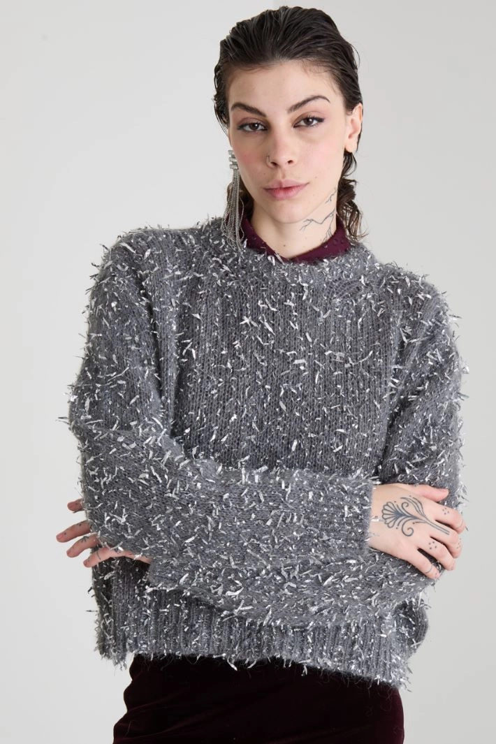Regular-fit sweater in alpaca and lamé wool, with a crew neck, long dropped sleeves and ribbed trim.