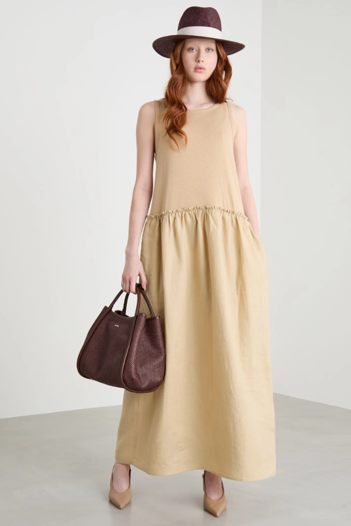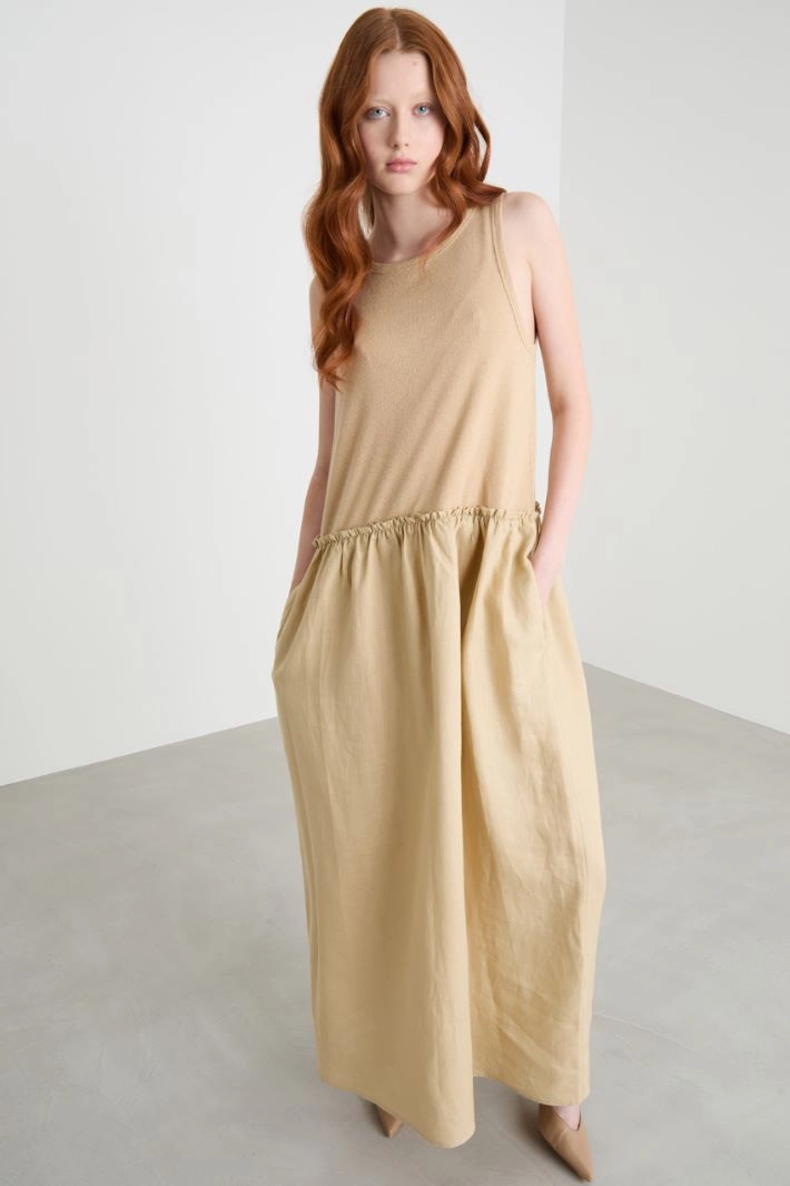 Maxi dress in jersey and linen canvas