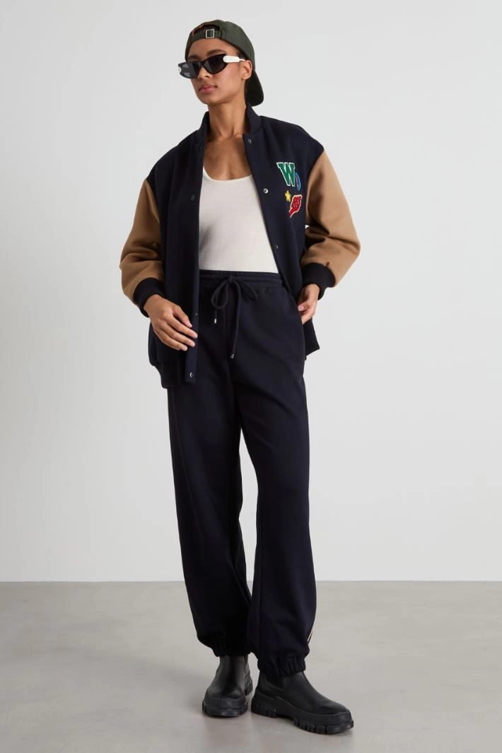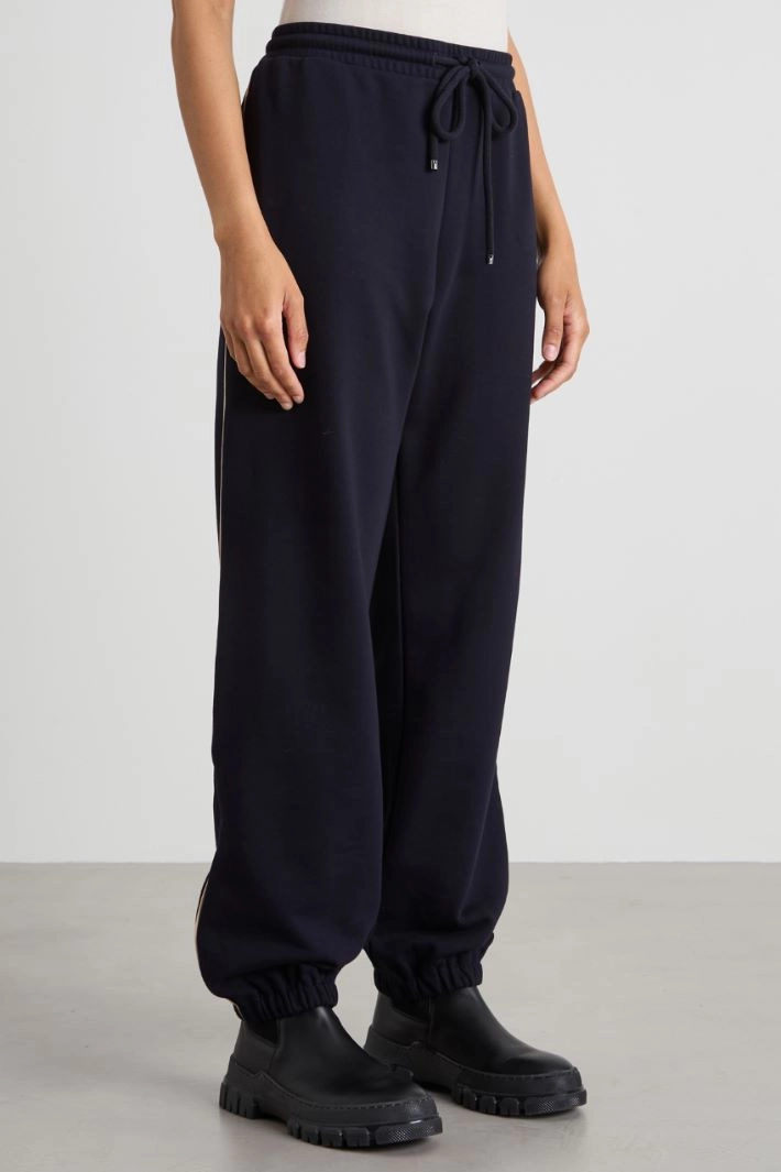 Loose-fit joggers in cotton blend fleece, with elastic insert and drawstring at the waist, inset side pockets, single patch on the back and elastic bottom.