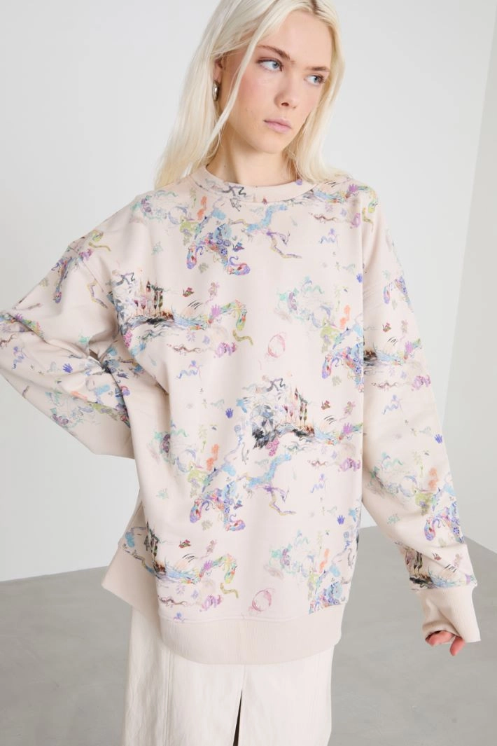 Long, oversized sweatshirt in heavy, pure cotton jersey with an all-over print, featuring a crew neck, long dropped sleeves and ribbed trims.