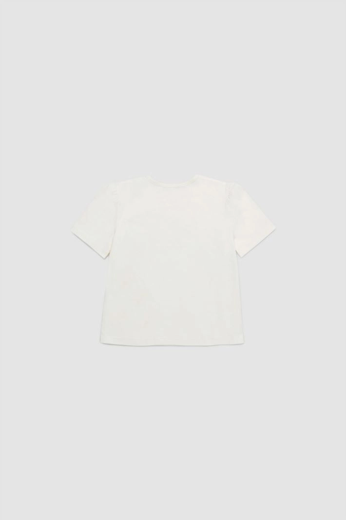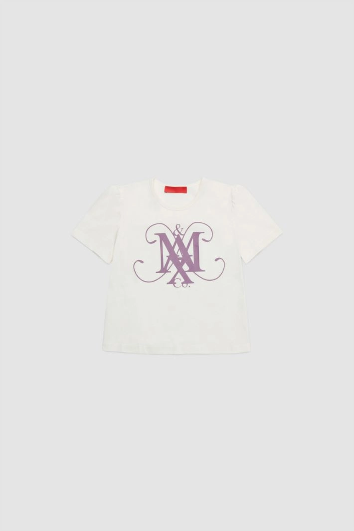 Straight-fit cotton jersey T-shirt with a round neck, short sleeves, and a contrasting print on the front. Balloon-effect sleeves.