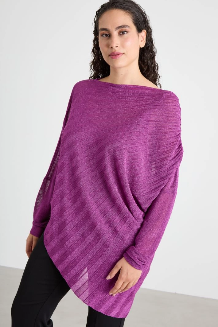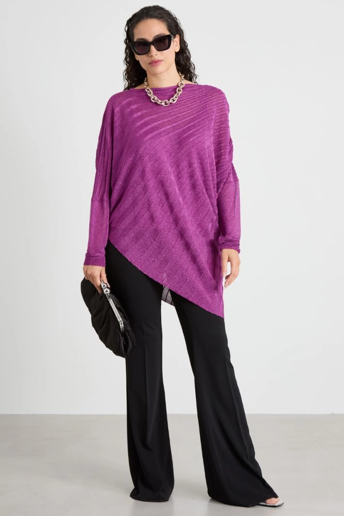 Loose-fit sweater in blend of viscose and stretch lamé yarn, with an asymmetrical neckline and hem, long sleeves and a matching slip top.