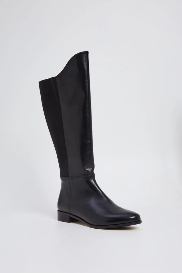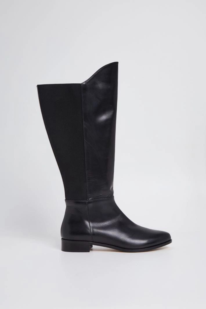 Boots in genuine leather with asymmetrical shaft detail, and elastic insert on the back to facilitate the fit. Fastening via internal side zip. Leather lining, rubber sole.