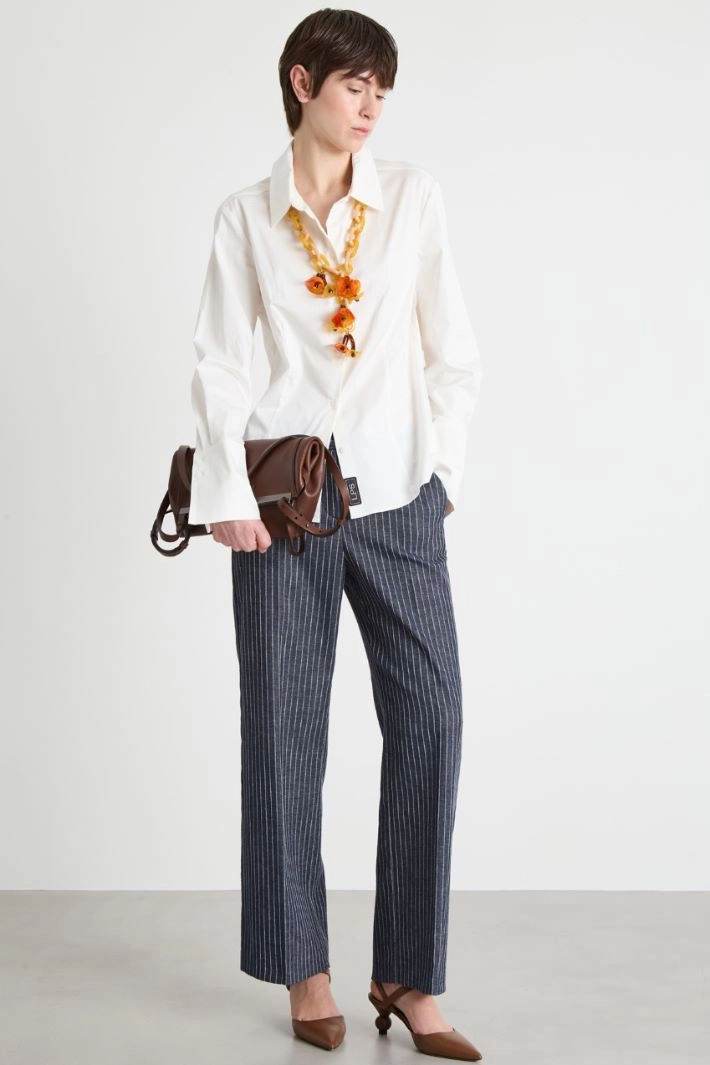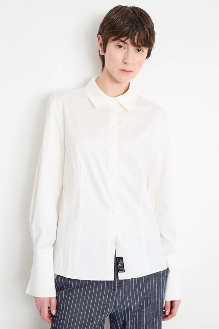 A straight-cut shirt crafted from a cotton blend, featuring a pointed collar and long sleeves with deep cuffs. Button fastening.