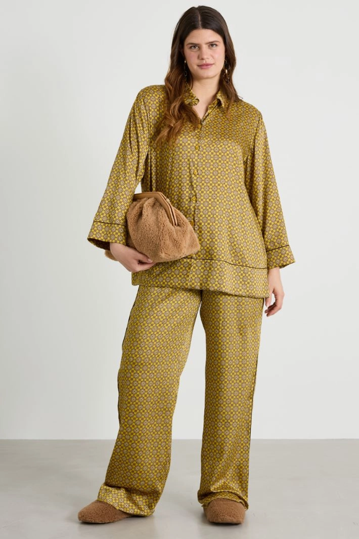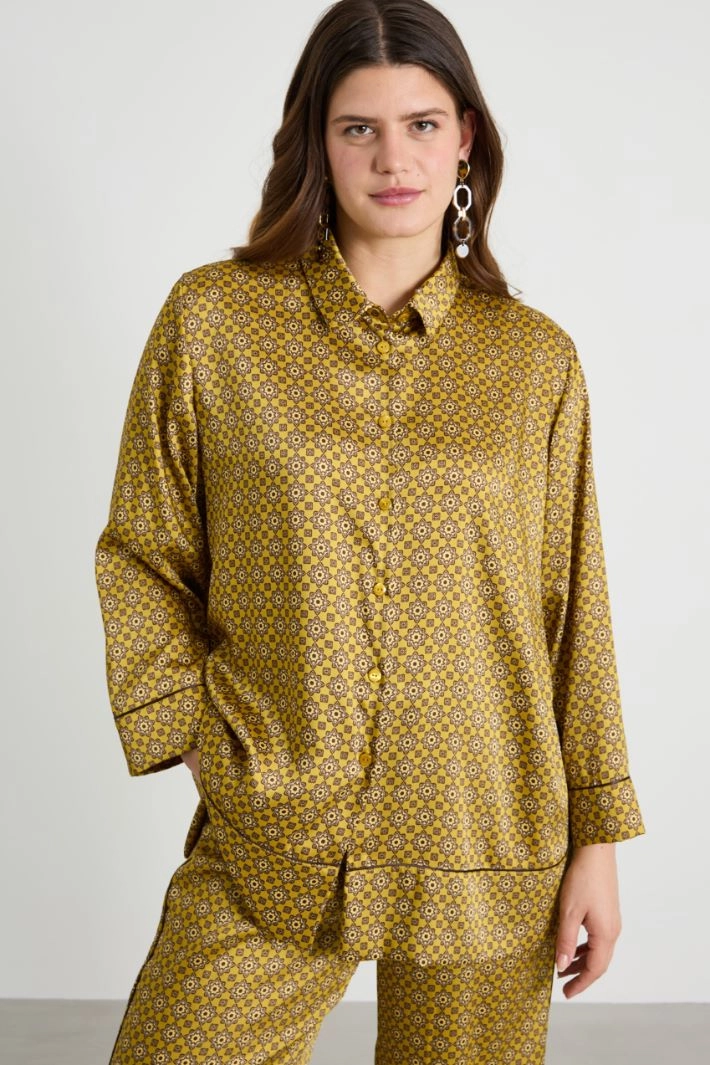 Straight-cut shirt in all-over printed twill, with classic collar, long sleeves and button fastening.