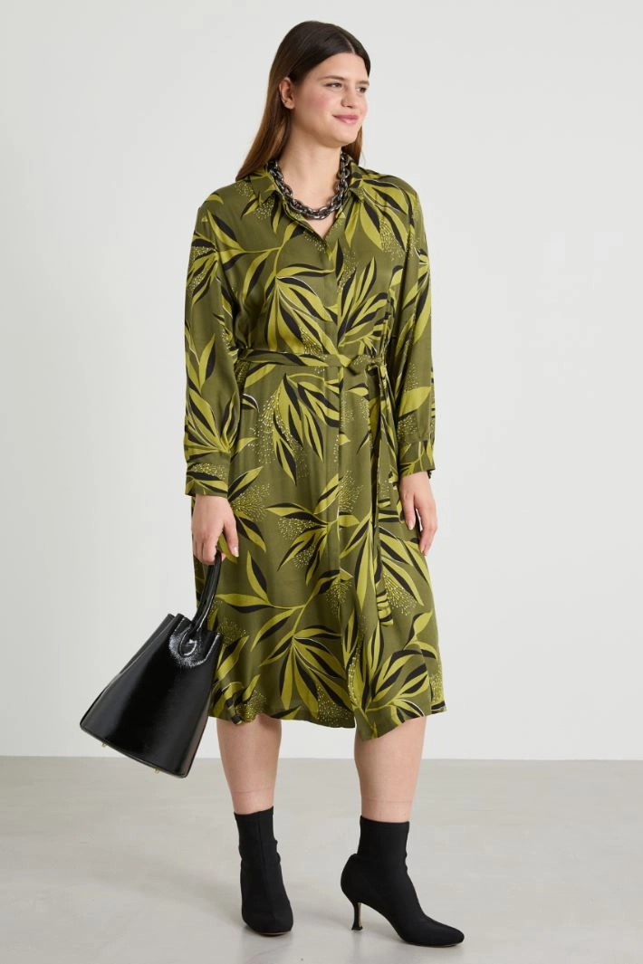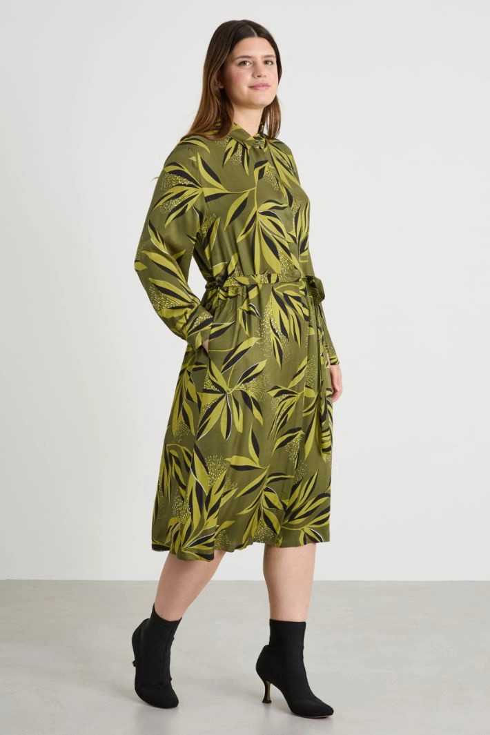 Shirt dress in viscose twill, with shirt collar, long sleeves with cuffs and buttons, and pockets inset at the sides. Concealed fastening with buttons. Matching belt.