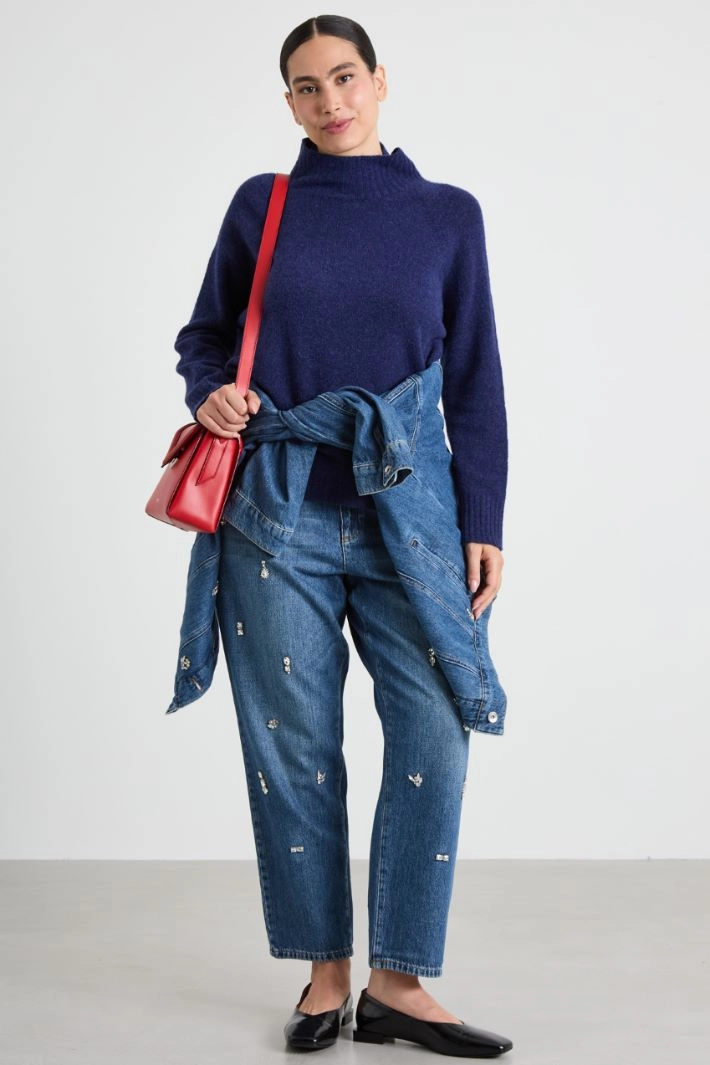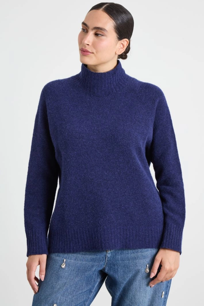 Regular-fit sweater in stretch wool blend yarn, with crater neck, long raglan sleeves and ribbed trim.