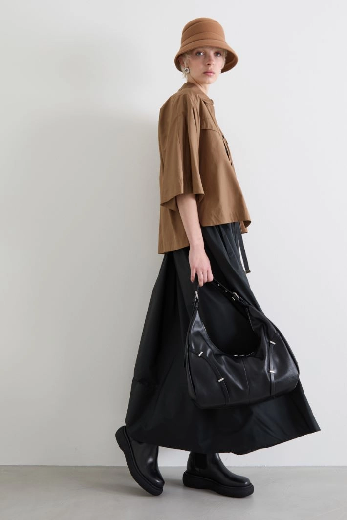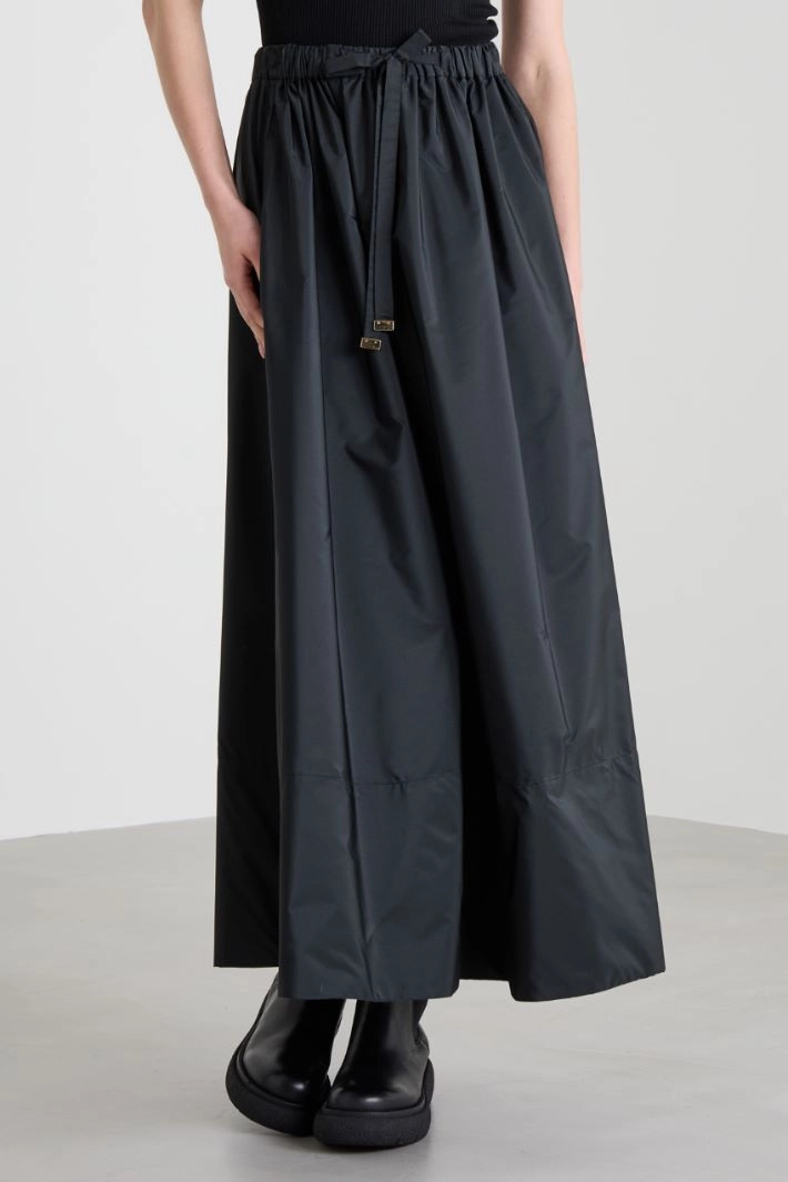 Flared taffeta skirt with elasticated waistband and drawstring, and inset side pockets.