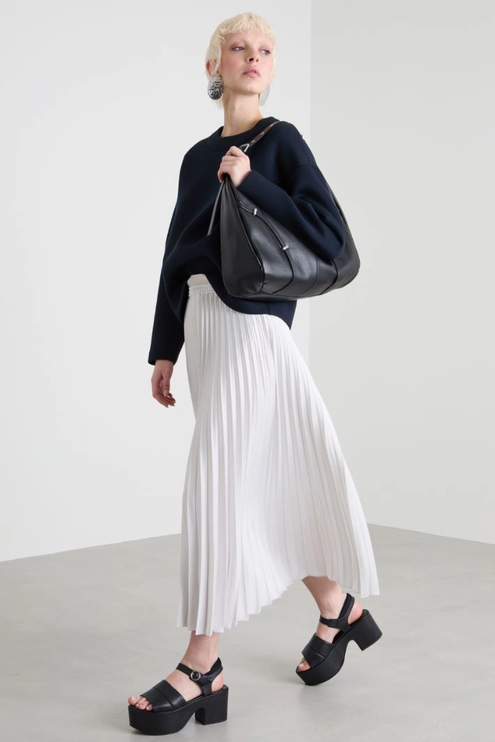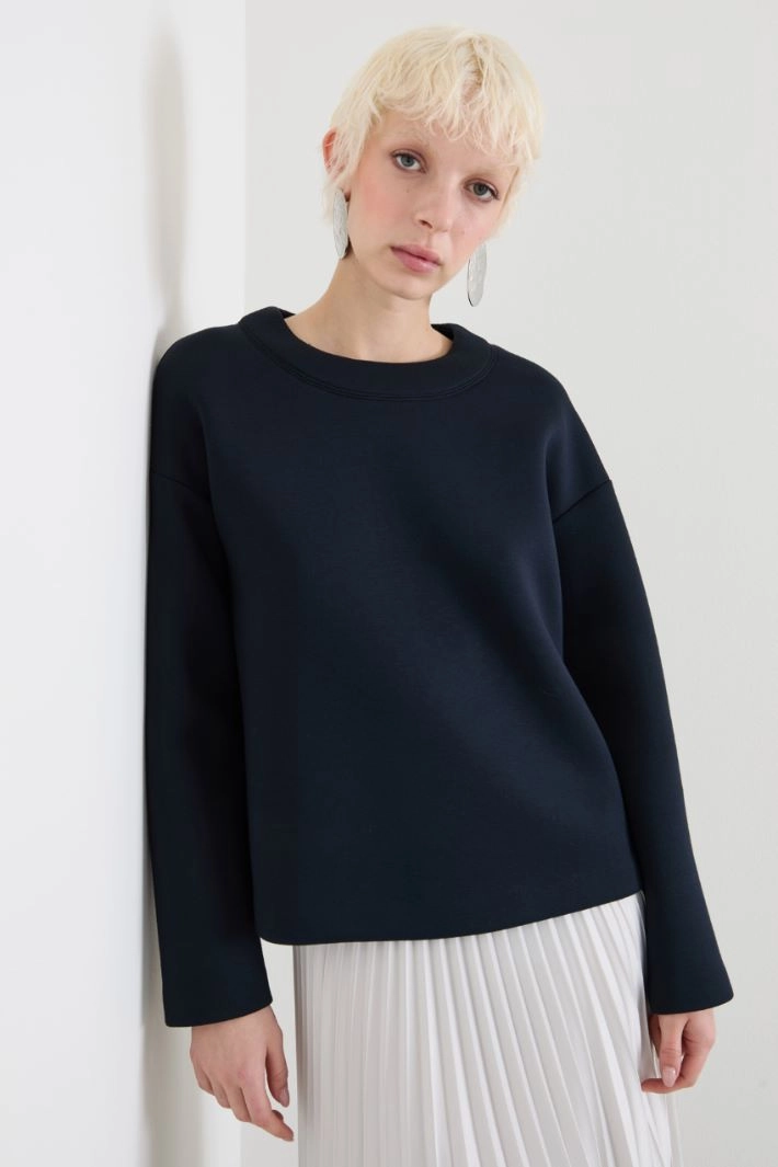 Straight-cut sweatshirt in compact stretch viscose jersey, with crew neck and long sleeves.